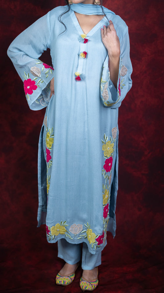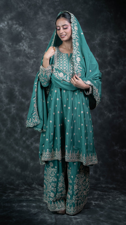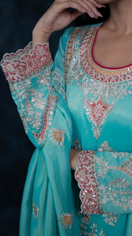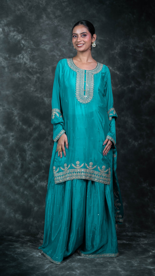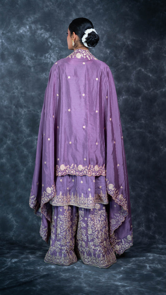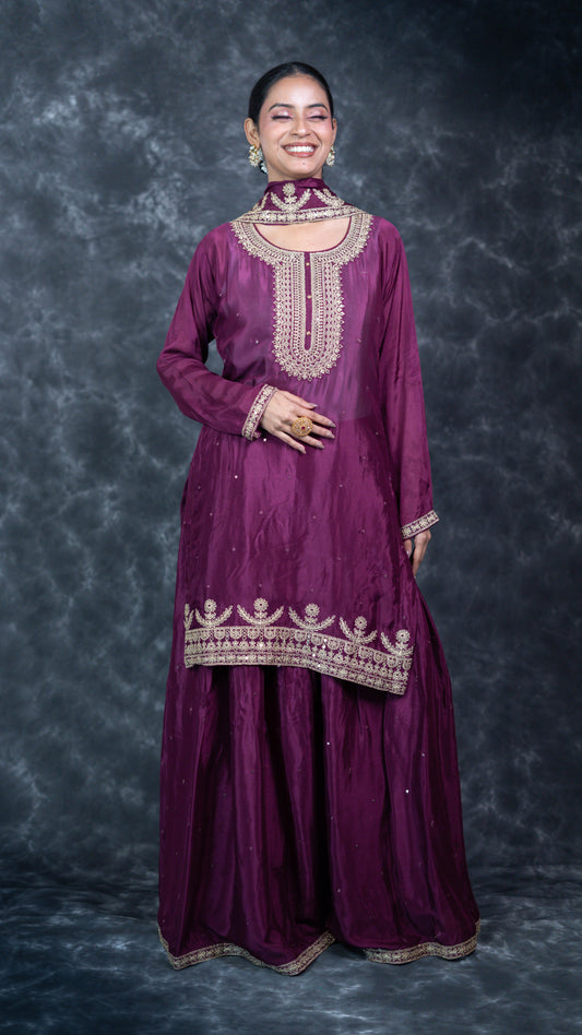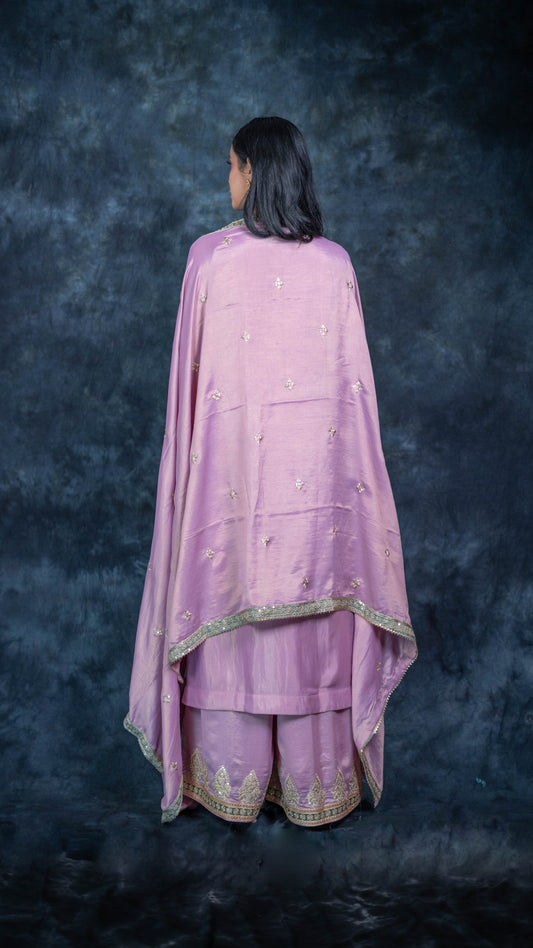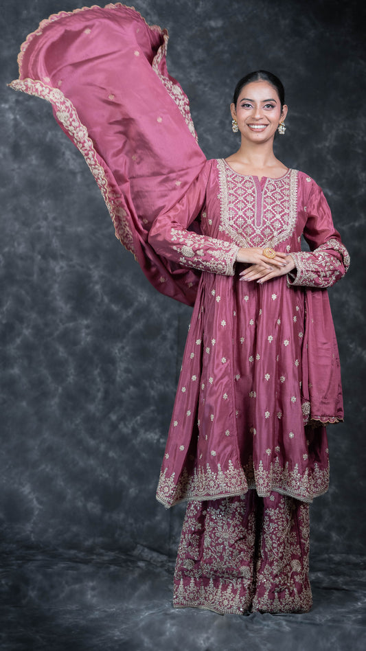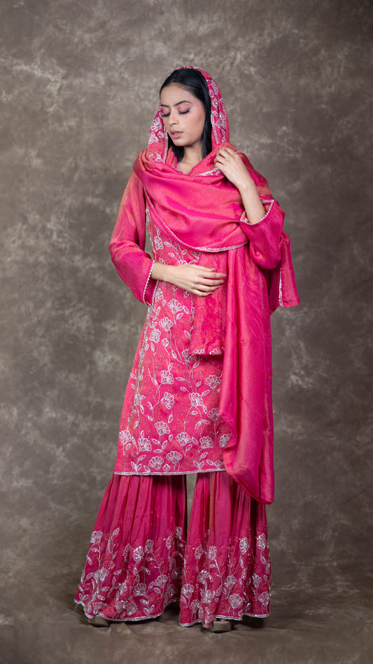 Kanjiwaram Pink Hand Embroidered Garara Suit Set